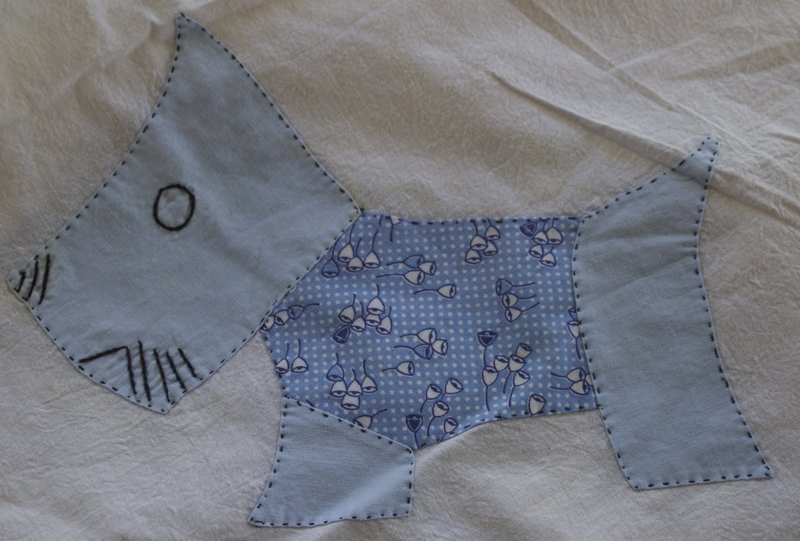 This one is unfinished & I get to do a little hand stitching so it will match the other dogs.